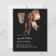 Um fundo preto, decorado com um quadro fotográfico em forma de arco. Personalize e adicione um nome e detalhes da parte. 1 folha = 1 convite impresso de borda a borda.