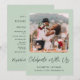 Fuga / convite de casamento pequeno com sage verde para anúncio e recepção pós-casamento ou festa de celebração. A frente apresenta sua foto, "Celebre Conosco" em um script sofisticado e seus primeiros nomes e data e local do casamento em uma tipografia moderna simples. No verso, você pode personalizar o anúncio do casamento ou fuga em mais detalhes, adicionar um convite para a recepção ou festa e assinar seus nomes de casados em uma fonte com aparência de assinatura.