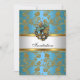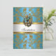 Convite Elegante Sophisticado Dourado Azul Turquesa Floral damasco para Qualquer Ocasião Convites de festa de aniversário