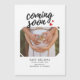 Um excelente de forma a anunciar as suas interessantes notícias com um cartão de anúncios de gravidez fotográfica favorito, que tem uma cobertura preta de texto negrito com o ditado "em breve". Personalize com seu nome e a data de vencimento esperada. Substitua esta foto do marcador de posição e adicione seu texto ao cartão clicando no botão "Personalizar" acima