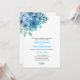 Este convite para o casamento apresenta ramificações de aquarela suave e flores azuis vívidas, que vão do chá ao marisco. Está prevista a redação para a celebração de uma missa nupcial católica. O convite multifunções tem informações de registro de recepção e de presentes no verso.