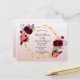 Na frente: um rosa empoeirado de tendência, fundo de gradiente branco com uma falso estrutura em forma geométrica dourada. Decorados com flores, rosas e penas do estilo "boho" escuras e burguesas. Modelos para o nome da noiva e detalhes da festa. O nome é escrito com um script de estilo manuscrito, letras pretas. Dica: Se você não quiser que pareça um cartão postal, clique em personalizar, vá para o verso e remova o divisor e o carimbo de posto.