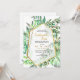 Um convite moderno e chique que caracteriza uma variedade de folhas da floresta com um fino, abstrato, quadro do ouro. (<a href="https://www.freepik.com/free-photos-vectors/brochure">Vetor do folheto criado por BiZkettE1 - www.freepik.com</a>). <br/><br/>O cartão é fácil de personalizar com seus fraseio, pia batismal, cor da pia batismal e escolha de seis tipos de papel<br/><br/>Não exatamente que você está procurando? Todos nossos produtos podem ser projetados para encontrar suas necessidades em nenhuma sobretaxa<br/><br/>Contacte-nos simplesmente em askcottonlamb@gmail.com<br/><br/>Produtos de coordenação disponíveis: