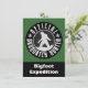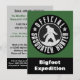 A criatura legendária conhecida como bigfoot é o centro de uma imagem oficial do estilo do logotipo do caçador do sasquatch em preto e branco, com tipo afligido efeito do grunge aplicado. Mude a cor do fundo (mostrada como o verde) e escolha um texto de coordenação para o verso clicando o botão da personalização.