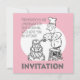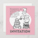 Este convite de casamento mostra um desenho de um bolo gigante sendo preparado!