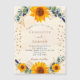 Um fundo de cor aquosa ouro decorado com girassóis, eucalipto verde, folhas de ouro e corações. Personalize e adicione seus nomes e detalhes da festa.