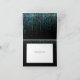 RSVP Abstrato Moderno - Uma guirlanda ousada e espelhada em azul turquesa cai pela página, em caligrafia manuscrita está "nos avise" - iniciais do casal no topo - o resto do texto é simples e limpo - tudo em um fundo preto. Papelaria de casamento elegante.