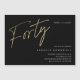 O aniversário de 40 anos minimalista moderno apresenta o na moda faux gold foil number guião manuscrito Quarty e os detalhes do seu partido em serif clássico sobre a cor preta de fundo, simples e elegante convite de aniversário de um marco para adultos, surpresa para excelentes, para homens e mulheres. a cor preta de fundo pode ser alterada para qualquer cor da sua escolha.