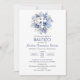 Convide familiares e amigos para o batismo católico do seu bebê com este convite religioso. Projetado com flores azuis fofinhas. Espanhol / Espanhol: Celebra el Bautizo de tu hijo o hija con esta invitación.