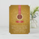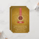 Deixe a festa começar do momento onde abrem seu cartão. O convite caracteriza um close up de um conselho sadio da guitarra com o furo sadio, as cordas e a sela. (FP)