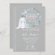Um Convite Especial Para Chás de fraldas. FRONT: Um coelho desenhado à mão, pássaros e flores em uma coroa em tons de azul, verde e branco. O texto diz: "Algum coelho especial está a caminho!" A maior parte do texto já está incluída como parte da design - basta preencher o nome da mãe, os detalhes da parte e o registro. O buquê na parte inferior pode ser redimensionado, reposicionado ou mesmo excluído se você precisar de mais espaço para texto. VOLTA: Opcional para adicionar o nome do bebê debaixo do coelho.