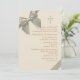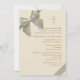 O simples, fundo do ecru "é amarrado ordenadamente" com uma fita e um arco do ouro. O único enfeite é a cruz que pode ser feita maior (+) ou menor (-), arrastado a algum lugar ou eliminado fazendo este convite apropriado para alguma celebração. O cartão é fácil de personalizar com seus fraseio, pia batismal, cor da pia batismal e escolha de seis tipos de papel.