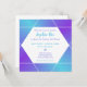 Um design casual e moderno, com um fundo ombre turquesa e roxo, faz com que este convite de Bat Mitzvah se destaque na multidão.