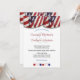 Este bunting vermelho, branco e azul patriótico ao longo da parte superior e estrelas correspondentes ao longo da parte inferior definem o design da frente deste convite de casamento. A parte de trás do convite corresponde ao design da frente. Personalize o design com os detalhes do seu casamento nos campos do modelo.