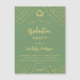 Um fundo verde sábio decorado com estrelas douradas falsas e um boné. Personalize e adicione um nome, detalhes da festa e ano. O texto Graduação e o nome são escritos com um script de estilo moderno, escrito à mão.