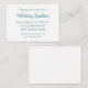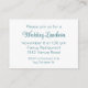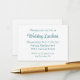 Convide seus amigos e familiares mais queridos para compartilhar uma celebração íntima com este cartão de inserção de convite de casamento lindamente desenhado. Perfeito para eventos além da recepção - como um café da manhã de casamento, almoço ou jantar em família, ou selamento no templo - este pequeno cartão adiciona um toque encantador ao seu conjunto de convites. Concebido com elegância discreta, o cartão apresenta texto em azul-turquesa sobre um fundo branco nítido para uma estética limpa e moderna; uma fonte de letra cursiva sofisticada para o nome ou título do evento; uma fonte sans-serif complementar para todos os detalhes adicionais; e um verso em branco para notas ou personalização adicional. Todas as linhas de texto são totalmente personalizáveis, tornando este inserto uma escolha versátil para qualquer reunião de casamento adicional que você gostaria de destacar, garantindo que seus momentos especiais sejam compartilhados com aqueles que mais importam.