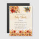 Um fundo branco na moda e ouro de cor d'água. Decorado com uma abelha e flores amarelas e laranja. Com o texto: Chá de fraldas escrito com um moderno estilo escrito à mão. Personalize e adicione o nome da mãe a ser. Ouro e letras pretas