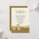 Convite feito sob encomenda elegante do casamento feito no creme, com gráficos de um ouro no design ornamentado do redemoinho do ouro, na parte inferior, do convite e da coberta a parte traseira. Gráficos de um cetim que olha a fita e o arco tan dourados, funcionamentos através da parte inferior. O texto preto está inteiramente customizável e pronto para personalizar para seu dia especial. Produtos de harmonização disponíveis.
