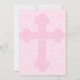 Convite do baptismo da menina à moda, ou primeiro convite do comunhão, feito em uma cor damasco cor-de-rosa e branca bonito do círculo, com uma cruz colorida mais escura encaixada no fundo. Personalize a obscuridade - texto cinzento para o baptismo da sua criança. Maneira bonita de convidar amigos e família, a testemunhar o dia especial da sua criança na igreja.