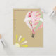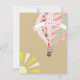 Um convite do chá de fraldas da menina que caracteriza uma ilustração de um balão de ar quente com umas bolinhas cor-de-rosa femininos, uma xadrez, listrada, um guingão, e um teste padrão floral. A bandeira no balão diz, "é uma menina." Ilustração do sol no fundo deixada do direito dianteiro e inferior da parte traseira. Personalize o texto sobre para trás com detalhes de sua ocasião.