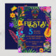 Vamos celebrar o 5 de Maio com estilo em uma festa! O design apresentará elementos tradicionais mexicanos, como flores, violões, pimentões vermelhos, caveiras de açúcar, maracas e tortilhas em um fundo azul-marinho que pode ser editado. As cores usadas no design serão brilhantes e vibrantes, incluindo rosa, vermelho, azul, amarelo e verde.
