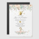 Convites personalizáveis para celebração mágica do segundo aniversário da menina com flores rosa cor-de-rosa e folha dourada e brilho de fada para os detalhes do seu evento.