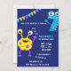 Convite para a festa de sétimo aniversário do pequeno monstro com tema azul real.