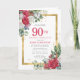 Honra uma mulher especial com este 90 de aniversário elegante e feminino convite de festas dobrado. 80 é escrito em texto vermelho grande. A comemoração de aniversário segue. O nome do convidado também está em letras vermelhas. O resto do texto é cinza de pomba mole. Os detalhes da celebração de aniversário são cercados por uma moldura de ouro cônico que é decorada com rosas vermelhos e brancos e folhas holly e eucalipto. Enquanto é um design tradicional, a folhagem botânica aberta e arejada e o texto lhe dão uma vibração contemporânea. Há uma mensagem dentro que você pode personalizar facilmente.