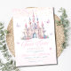 Com um castelo rosa sonhador, borboletas delicadas e cores pastéis elegantes — este design é perfeito para uma festa de aniversário com tema de princesa. Totalmente editável para que você possa personalizar o texto para o dia especial do seu filho. Ideal para convites impressos ou distribuição digital