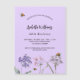 Um fundo colorido violeta e lavanda. Decorado com abelhas e pintado flores silvestres em violeta e rosa. Personalize e adicione um nome e detalhes da parte.