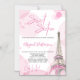 Doce 16 Paris temia Convite de aniversário em uma bela folha magnética. Doce Dezesseis, seu nome e sua divertida exclamação parisiense "Ooh la!" estão escritos em caligrafia rosa, enquanto o tempo de convite e os detalhes do local são impressos em preto. A Torre Eiffel de Paris ilustra aquarelas com tons de rosa e ouro, cercados por um sutil pano de fundo de um pinto rosa. Procure nossa coleção para coordenar suprimentos de correio e doces 16 elementos essenciais.