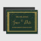 A Save the Date magnético card for a Festa de formatura party. Um fundo verde decorado com confete de ouro e uma falso estrutura dourada. Personalize e adicione uma data e um nome. Letras coloridas com ouro. O texto: Salvar a Data é gravado com um script de estilo com letra de tendência grande.