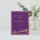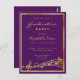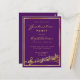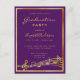 Um convite de luxo para uma festa de formatura de 20xx. Luxuoso com um fundo roxo elegante e moderno e decorado com notas musicais em dourado falso. Modelo para um nome e detalhes da festa. Com uma moldura em dourado falso. O texto Formatura e o nome são escritos com uma fonte moderna de letra manuscrita. Letras douradas.