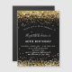 Um ímã de convite moderno, na moda e glamouroso para uma festa de aniversário 40ª (ou qualquer idade). Um fundo preto decorado com poeira falsa dourada. O nome é escrito com um moderno estilo escrito à mão. Personalize e adicione os detalhes da sua festa.