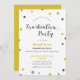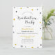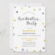 Este convite na moda é ideal comemorar orgulhosa uma graduação do segundo grau, da faculdade ou da universidade. Caracteriza pontos festivos ao redor no cinza e no amarelo. A pia batismal cursive é moderna contudo elegante. Este design unisex é perfeito comemorar este marco miliário importante.