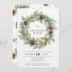 Convite Festivo para Férias Férias Naturais Férias Férias - Um convite na moda perfeito para sua celebração de feriado. Nosso convite rústico moderno apresenta uma coroa natural de pinheiros adornada com eucalipto e pínus cones. Seus convidados adorarão receber nosso convite moderno. Nossa modelo é fácil e conveniente para você personalizar nosso convite para sua celebração.