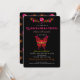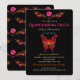 Borboleta rosa, elegante, com flores Fiesta em combinação com padrão floral de arte popular mexicana sobre fundo preto chico. Convite de 15 de Quinceañera exclusivo.