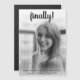 Anúncio de graduação magnética moderna apresentando "finalmente" em uma escrita negra grossa juntamente com o nome do formando e informações escolares sobre sua foto vertical favorita. Um design simples que faz da sua foto o recurso principal. Este anúncio magnético funciona para um menino ou formando de menina e dobra como um guardião.