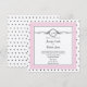 Este design bonito e elegante, chamado a borboleta preto e branco do rosa das bolinhas casamento fino, tem os anos 50 bonito um design inspirado. O fundo é branco com bolinhas pretas. É centrado um quadrado cor-de-rosa e branco macio da pétala inserir para seu texto com uma beira preta fina. Na parte superior há um design da borboleta com um círculo para suas monograma ou iniciais. Envie-me por correio electrónico por favor para o design de harmonização e os produtos ou com pedidos feitos sob encomenda em noteableexpressions@gmail.com. Este grupo tem convites, cartões salve a data, cartões da resposta, obrigado carda, cartões da barraca do número da mesa, selos do envelope, etiquetas do vinho, pastas, etiquetas de endereço do remetente e muito mais dia-das partes, dos favores, e dos presentes dos artigos de papelaria do casamento disponíveis. Use as etiquetas do selo do envelope para alguns de seus presentes de DIY - estes estão disponíveis em grandes e tamanhos pequenos! Todos os elementos são imprimidos em nossos produtos de alta qualidade, eles não incluem nenhuns elementos reais do ouro, das jóias, da gravação, ou o outro de matéria têxtil. Todo o design é as expressões notáveis dos direitos reservados, Inc. Todos os direitos reservados.