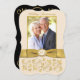 Este elegante convite de foto para aniversário de casamento de 50 anos, em floral de marfim, preto e dourado com arabescos, tem uma fita dourada IMPRESSA e uma medalha de marfim e dourado com aparência de gravura FALSA IMPRESSA. Ele tem uma área de modelo para você carregar sua própria foto digital. Você pode remover o texto estilizado em cursiva "Aniversário de Casamento" ou "50º". Todo o texto é personalizável, e as opções de papel também. ALÉM DISSO, se você mudar as fontes ou tamanhos de fonte, seu texto pode não caber mais corretamente. O Zazzle não editará nada para erros de digitação, alinhamento ou qualquer outra coisa, e eu não verei seu convite. Tudo será impresso como aparece no seu monitor. Se você precisar de ajuda com o convite, por favor entre em contato comigo ANTES de fazer o pedido. Este convite é projetado para se ajustar ao cartão de tamanho 5x7 com forma CURVA. Se você mudar para outro tamanho/forma, o design não se ajustará mais corretamente, então se