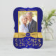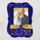Este convite de fotografia de aniversário de casamento de 50 anos, com flores em azul real e dourado, tem uma fita dourada IMPRESSA e uma medalha azul e dourada com aparência de gravura FALSA IMPRESSA. Possui uma área de modelo para você carregar sua própria foto digital. Você pode remover o texto estilizado em cursiva "Aniversário de Casamento" ou "50º". Todo o texto é personalizável, assim como as opções de papel. ****POR FAVOR, OBSERVE que se você mudar para papel metálico dourado, ele é um dourado muito escuro e alterará as cores do design (transformando a foto em dourada, etc.), então NÃO sugiro usar esse papel. O papel de feltro também alterará ligeiramente a cor da sua foto. ALÉM DISSO, se você alterar as fontes ou tamanhos de fonte, seu texto pode não caber mais corretamente. O Zazzle não editará nada para erros de digitação, alinhamento ou qualquer outra coisa, e eu não verei seu convite. Tudo será impresso como aparece no seu monitor. Se precisar de ajuda com o convite, por favor entre em contato comigo ANTES de fazer o pedido. Este convite foi projetado para se ajustar ao cartão de tamanho 5x7 com forma CURVA. Se você mudar para outro tamanho/forma, o design não se ajustará corretamente, então se você quiser um