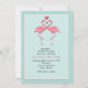 Um convite divertido e informal com dois flamingos cor-de-rosa, nariz a nariz, com um coração entre eles.