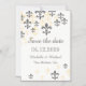 Esses cartões salve a data magnéticos apresentam uma encravada deliciosa de símbolos de Fleur de Lis, amarelo e preto. Um convite especial para o casamento de Nova Orleans e eventos especiais!