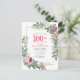 Uma moldura delicada e festiva de feriado contém rosas vermelhas e brancas aninhadas em folhas de azevinho e eucalipto. Elas adornam uma fina moldura dourada. O nome da pessoa que está fazendo aniversário e o ano de aniversário estão escritos em um vermelho bonito. Perfeito para uma festa de aniversário no feriado de inverno. Fácil de personalizar.