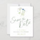 Casamento simples de arte botânica com aquarela salva o convite de data em tons de verde, azul e branco mudo. Edite esta opção para salvar a data do cartão magnético de casamento com seus próprios nomes e data. Pintura de aquarela de design único e flor de mão original, por Sarah Trett, apenas para www.mylittleedenweddings.com Você dá suporte ao artista original diretamente quando compra este produto!