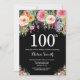100.º Convite de Aniversário para Mulheres. Flor Floral de Aquarela. Fundo do quadro negro. Rosa, Amarelo, Laranja, Flor Roxo. Aniversário Adulto. Para mais personalização, clique no botão "Personalizar" e use nossa ferramenta de design para modificar este modelo.