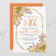 Uma areia aquosa e um convite floral cor de laranja ferrugem de 50 anos com moldura de ouro. Azul poeirento na parte de trás do convite. Um design de aquarela bonito e leve.