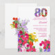 Celebre um marco no cheio floral com este convite de aniversário de 80 floral, com uma fronteira brilhante de jardim e um arrojado "80" cheio de flores. ✨ Nova versão disponível — mesmo design alegre, melhor layout e personalização mais fácil. 👉 Para encontrá-lo, basta inserir este código no bar de pesquisa do Zazzle: 256087353991508871 Esta versão original ainda é editável. Fotografado e projetado com amor. Aproveite!