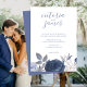 Convite Floral Azul Brilhante de Casamento de Verão, desenhado com flores aquarelas em tons de cinza azul e macia, sobre fundo branco. O texto frontal inclui: Data de Casamento, Hora, Local, Endereço e Nota de Recepção da Noiva e do Grupo. O inverso é um fundo azul de verão correspondente aos primeiros nomes do noivo e do noivo em texto branco. Para personalizar, basta inserir seu texto em nosso modelo fácil, passo a passo, substituindo o exemplo. Certifique-se de ver toda a Coleção de Papel de Carta Azul de Casamento de Verão para cartões e acessórios correspondentes. Esta placa está disponível em Impressão e Download.
