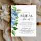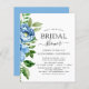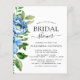 Primavera de Orçamento ou Verão Eucalipto e Blue & Blush Pink (Boy or Girl) Floral Rosa Flores Botânicas Molercola de Água Vermelhos Wreath Convites de chá de panela em fundo branco - inclui a bela e elegante tipografia da escrita moderna com folhas botânicas e verde para a celebração especial Bride Be.